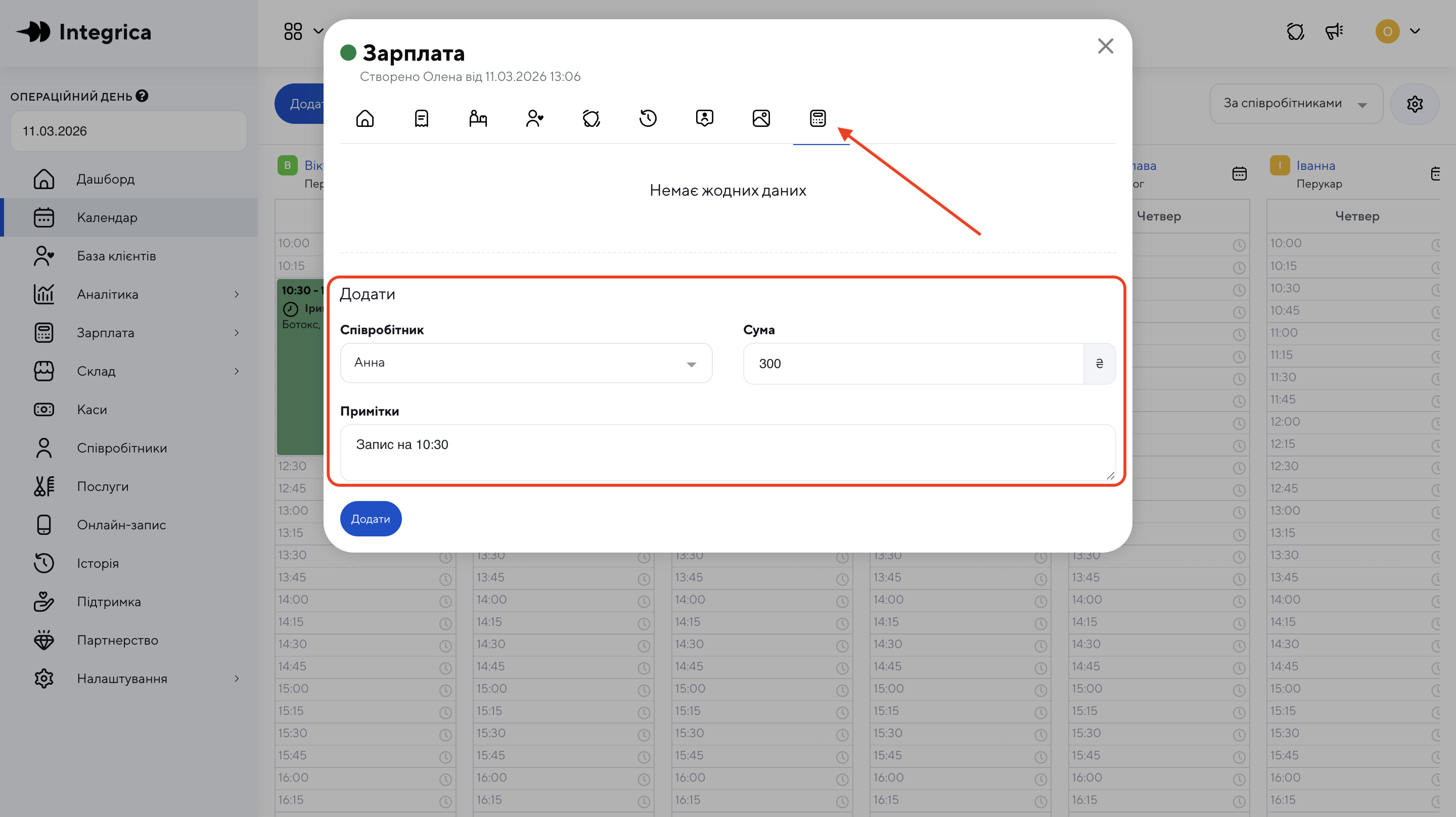 Перейдіть у вкладку Зарплата.