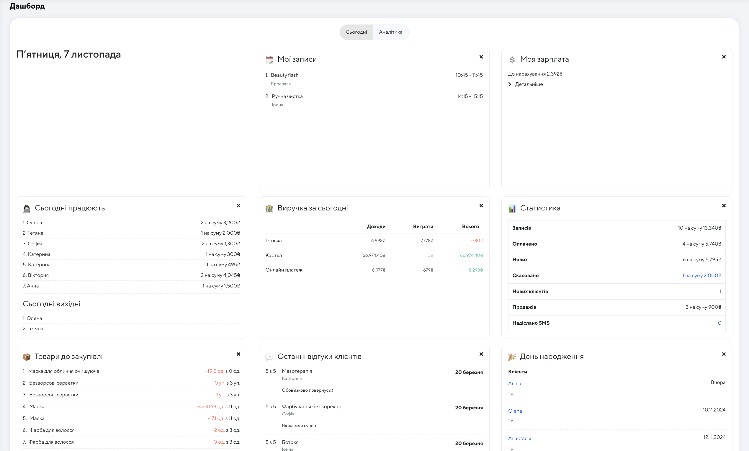 найближчі дні народження клієнтів