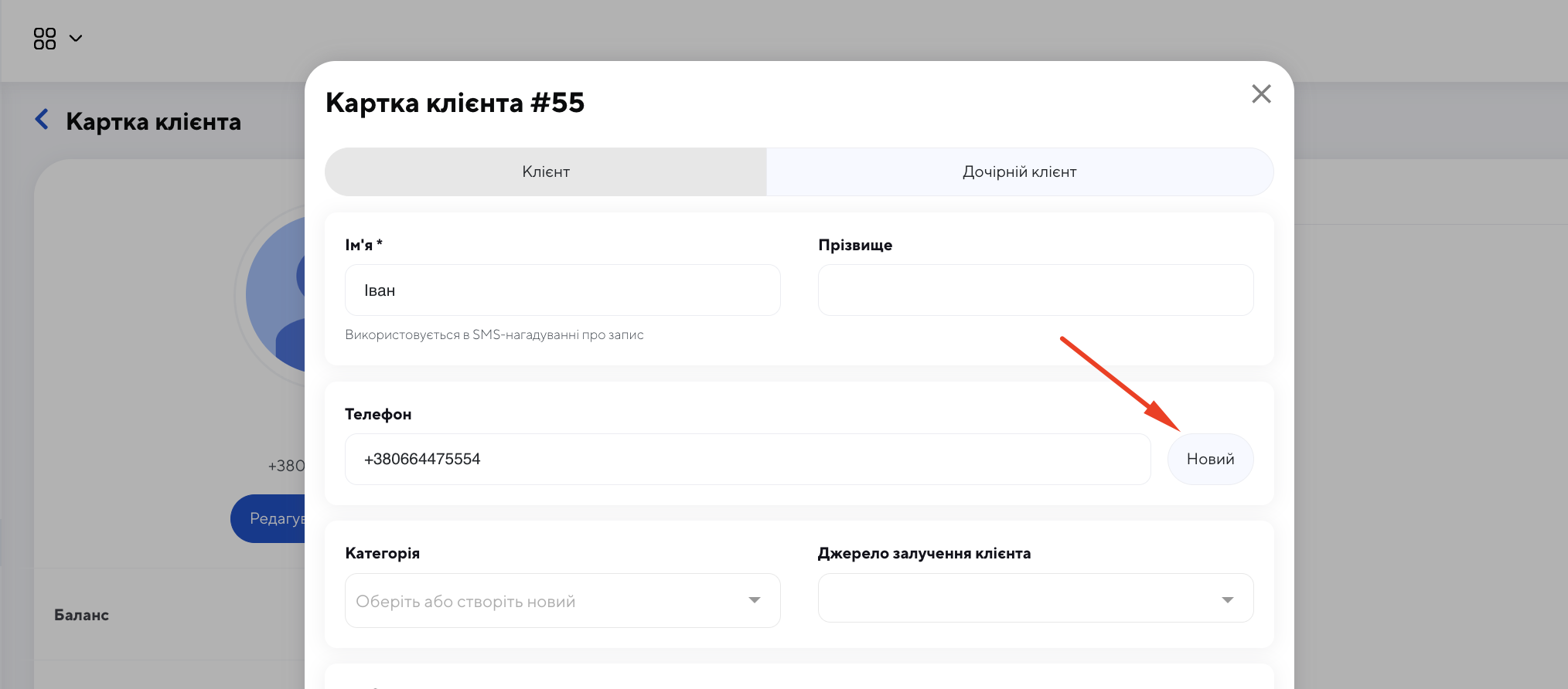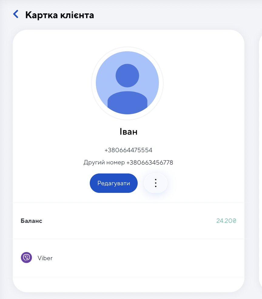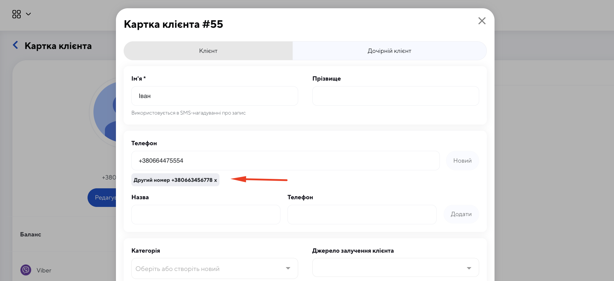 Іноді для одного клієнта потрібно зберегти кілька контактів: наприклад, основний номер телефону, додатковий номер або контакт близької людини. У картці клієнта це можна додати вручну, щоб уся важлива інформація була під рукою.