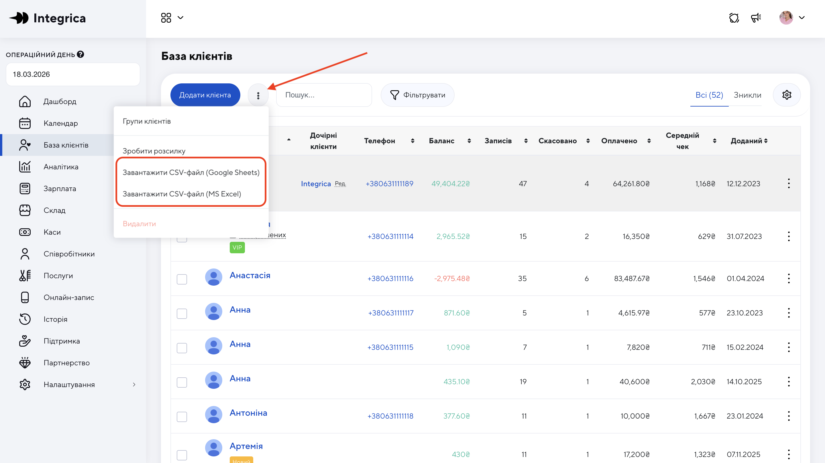 Натисніть на іконку трьох крапок біля кнопки «Додати клієнта»
