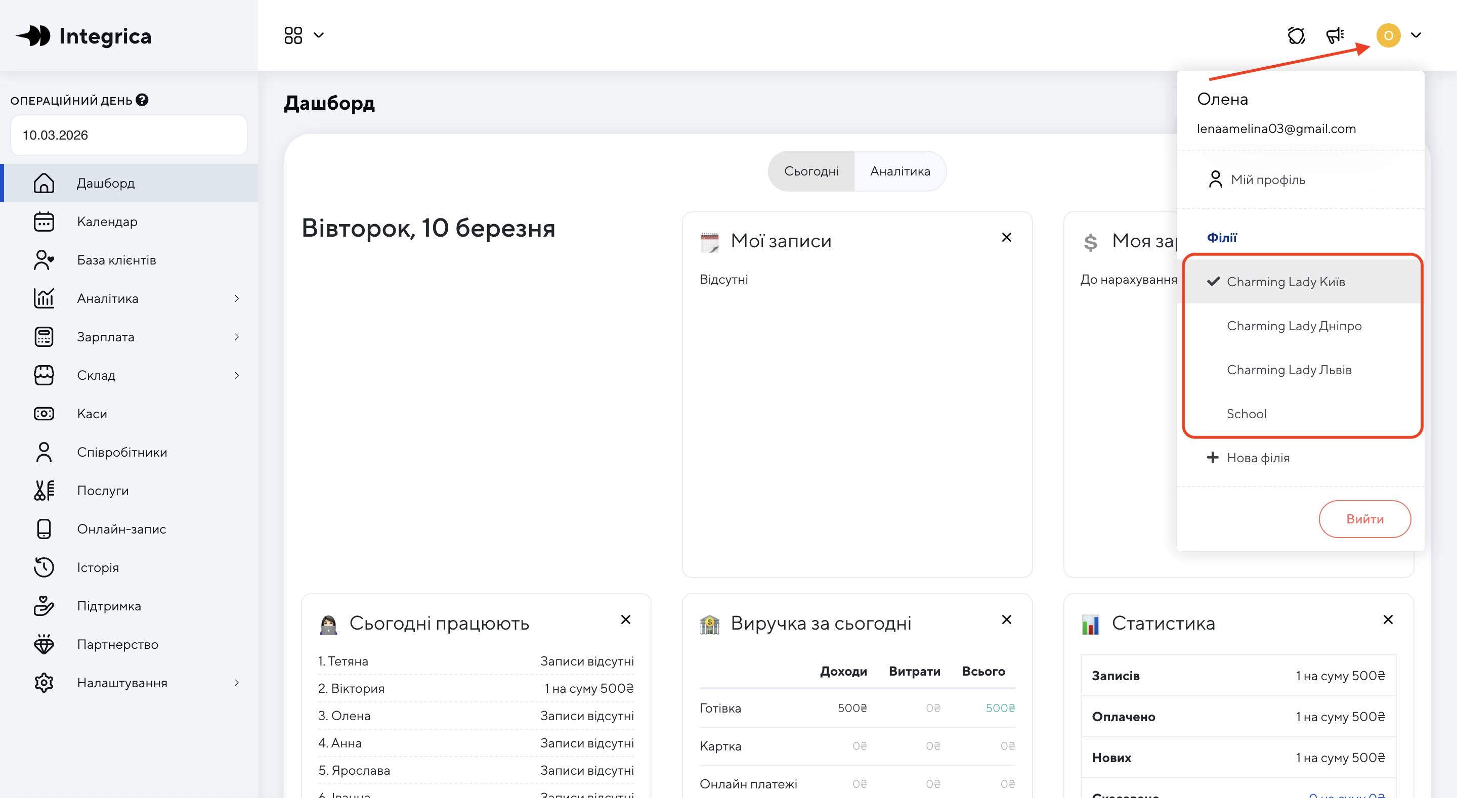 Натисніть на потрібну філію - система одразу переключиться на неї.