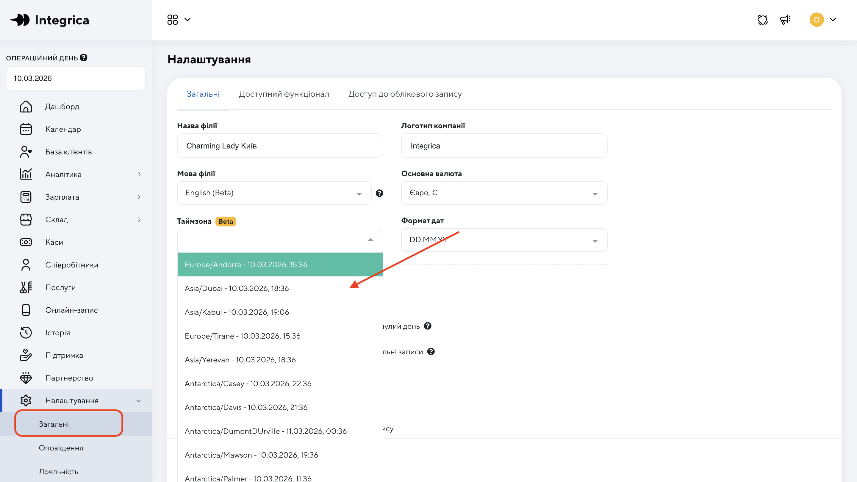 У полі “Таймзона” оберіть свій часовий пояс.