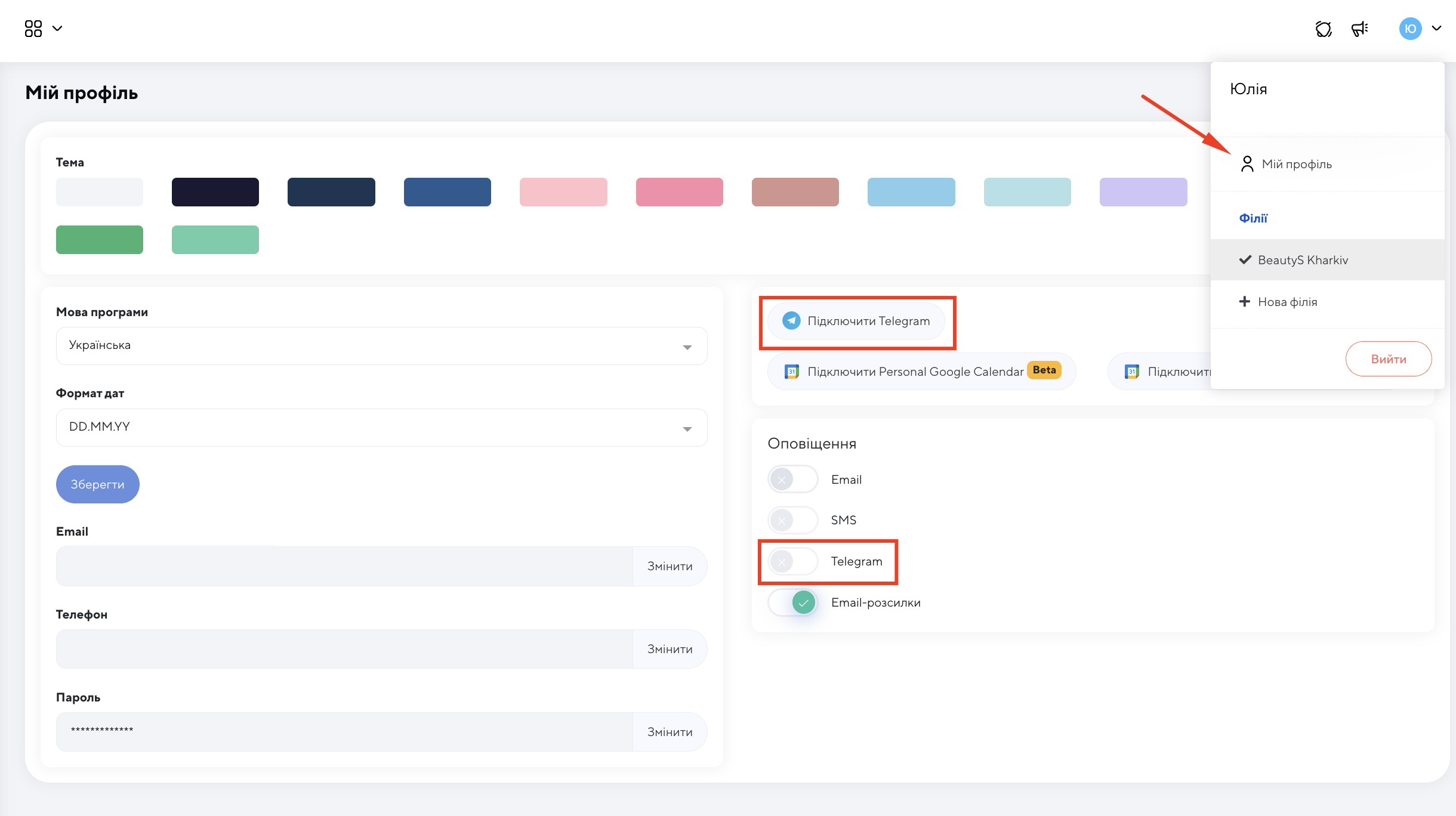 Крок 2. Підключити Telegram у профілі
